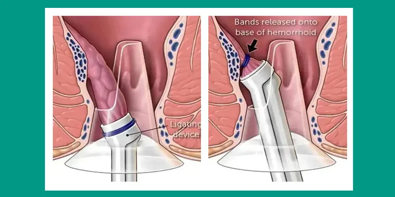 Hemorrhoids when small can be treated with rubber band ligation. Here small rubber bands are applied to cut off blood supply to internal hemorrhoids, causing them to shrink and fall off.